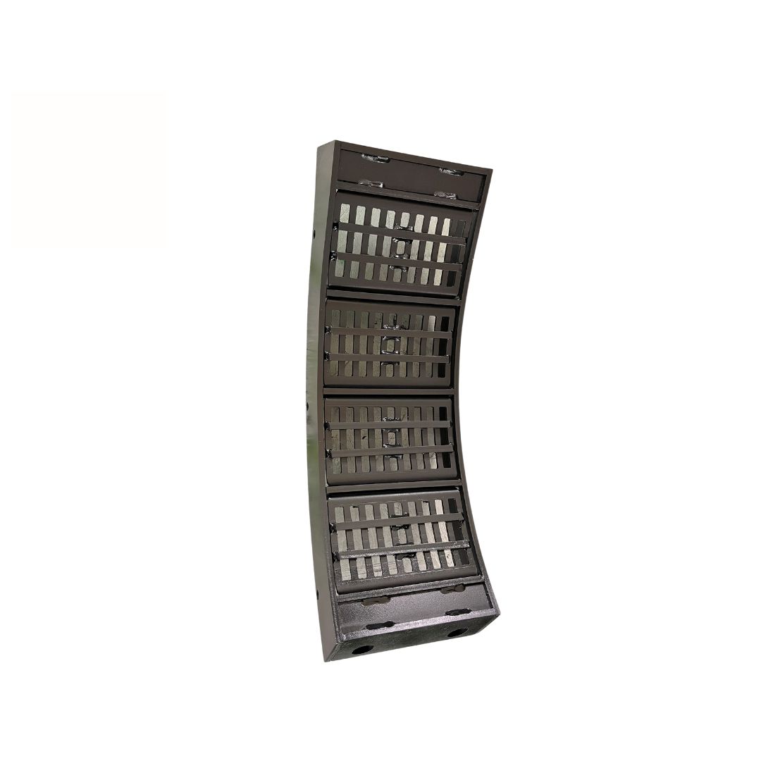 Concave consists of main frame and 4 standard thresh inserts. The Standard Thresh insert provides threshing, but it is less aggressive than our helical bar style. Standard Thresh Insert is designed to balance threshing and separating and is typically used in the middle of a concave set to transition materials or where a less aggressive thresh is desired. Individually replaceable. Right hand configuration.