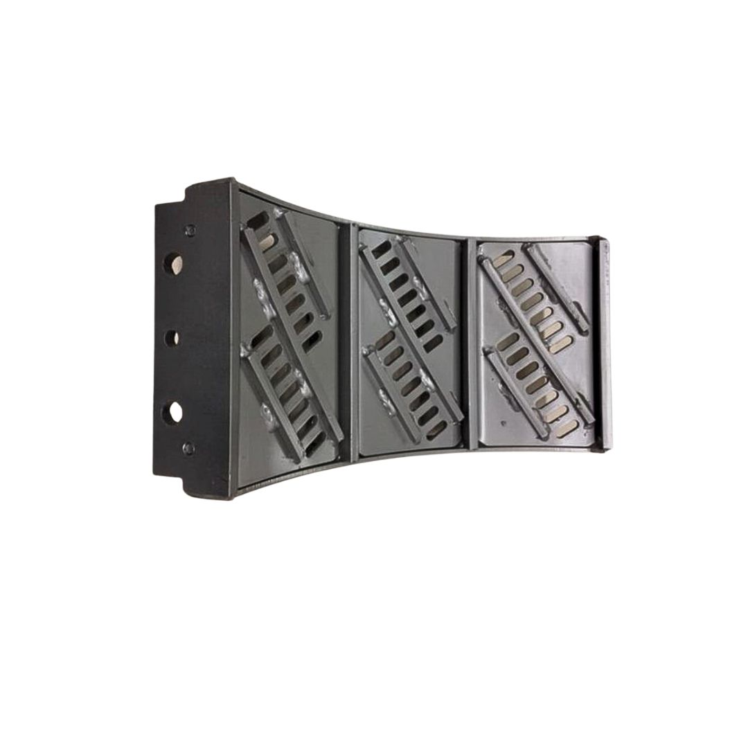 Boron max thresh module is normally used in the front area of the concave. The Boron Max thresh insert has narrower slots than the regular max thresh insert. It is typically positioned at the front of the concave, as it is designed for maximum threshing. It has small holes to allow early separation of already threshed grain, is 180-degree reversible, and is boronized for extended wearability. Boronizing is a thermo-chemical hardening process used to improve the life and performance of metal components and strengthen resistance to corrosion and abrasive wear. Left hand configuration.