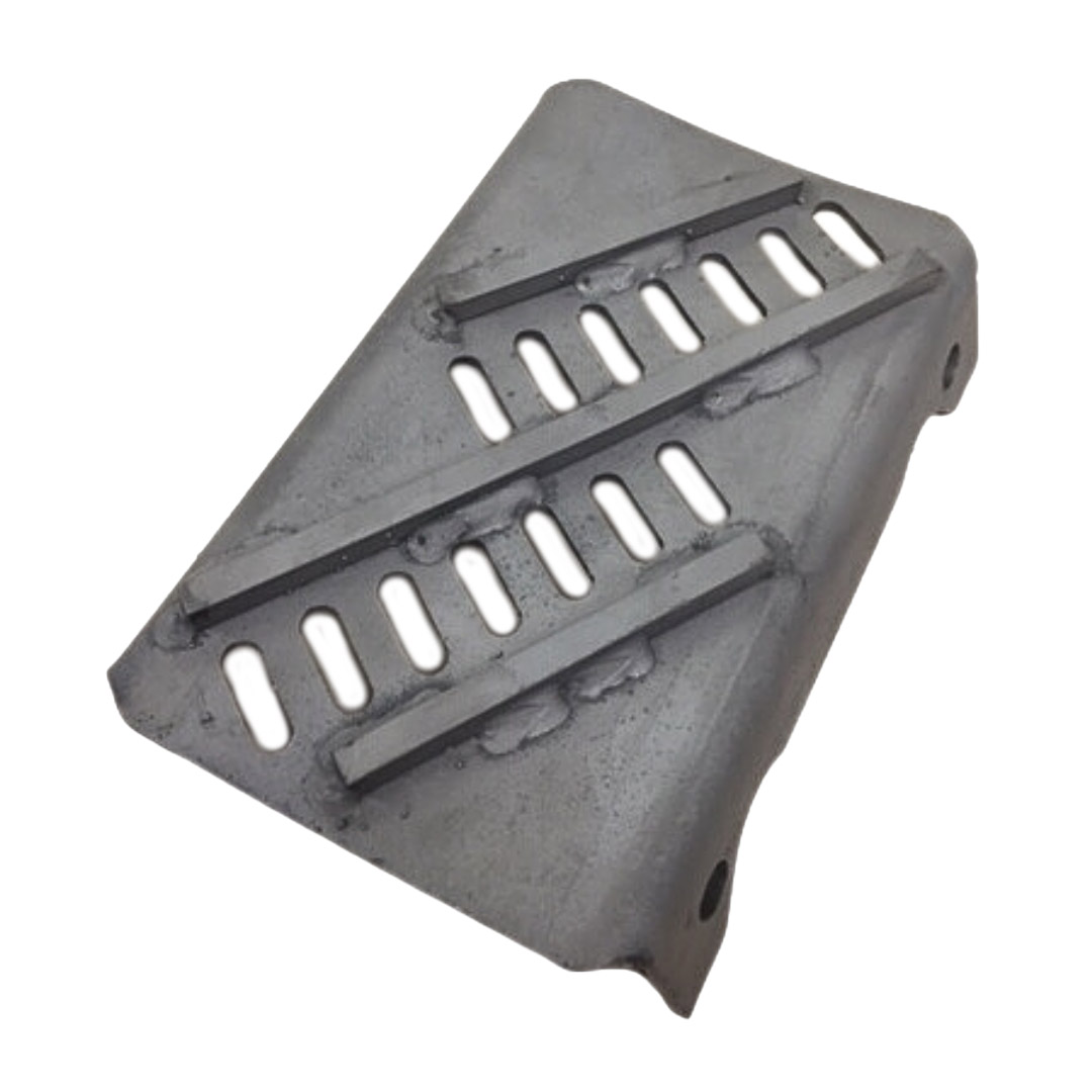 The Boron Max thresh insert has narrower slots than the regular max thresh insert. It is typically positioned at the front of the concave, as it is designed for maximum threshing. It has small holes to allow early separation of already threshed grain, is 180-degree reversible, and is boronized for extended wearability. Boronizing is a thermo-chemical hardening process used to improve the life and performance of metal components and strengthen resistance to corrosion and abrasive wear. Right hand configuration.